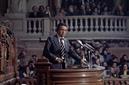 Mário Soares no uso da palavra a partir da tribuna da Sala das Sessões da Assembleia da República.