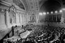 Sessão Solene na sala das Sessões da Assembleia da República. Na Bancada do Governo, Francisco Sá Carneiro, Primeiro-Ministro, o quinto a contar da esquerda, com os membros do VI Governo constitucional.
