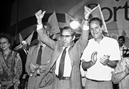 Ramalho Eanes e Herminio Martinho em Comício do Partido renovador Democrático