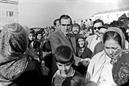 General Ramalho Eanes em campanha eleitoral cumprimenta a população.