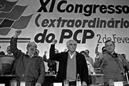 Álvaro Cunhal, Secretário-Geral do PCP, ao centro na imagem, com Octávio Pato à direita, no XIII Congresso Extraordinário do Partido Comunista, realizado em 1990.