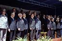 Na primeira fila, António Guterres, Primeiro-Ministro, o quinto a contar da esquerda, com Joaquim Chissano, Presidente de Moçambique, à sua direita.