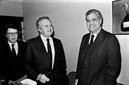 Da esquerda para a direita, Fernando Balsinha, jornalista, Mário Soares e Diogo Freitas do Amaral.