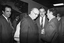 Da esquerda para a direita, Joe Berardo, empresário madeirense radicado na África do Sul, Pieter Willem Botha, Presidente da África do Sul, Roelof Botha, Ministro dos Negócios Estrangeiros sul-africano e Alberto João Jardim, Presidente do Governo Regional da Madeira.