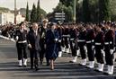 Honras militares por ocasião da visita oficial da Rainha Beatriz dos Países Baixos a Portugal. Mário Soares, Presidente da República, à esquerda na imagem, com a Rainha Beatriz à sua direita.