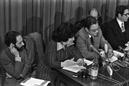 Conferência de Imprensa no Palácio Foz sobre o Plano Económico, Lourdes Pintasilgo, Melo Antunes, Vítor Constâncio, Correia Jesuíno, Silva Lopes, Rui Vilar.