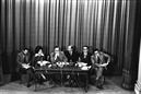 Conferência de Imprensa no Palácio Foz sobre o Plano Económico, Lourdes Pintasilgo, Melo Antunes, Vítor Constâncio, Correia Jesuíno, Silva Lopes, Rui Vilar.