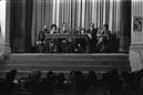 Conferência de Imprensa no Palácio Foz sobre o Plano Económico, Lourdes Pintasilgo, Melo Antunes, Vítor Constâncio, Correia Jesuíno, Silva Lopes, Rui Vilar.