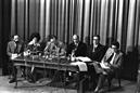 Conferência de Imprensa no Palácio Foz sobre o Plano Económico, Lourdes Pintasilgo, Melo Antunes, Vítor Constâncio, Correia Jesuíno, Silva Lopes, Rui Vilar.