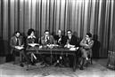 Conferência de Imprensa no Palácio Foz sobre o Plano Económico, Lourdes Pintasilgo, Melo Antunes, Vítor Constâncio, Correia Jesuíno, Silva Lopes, Rui Vilar.